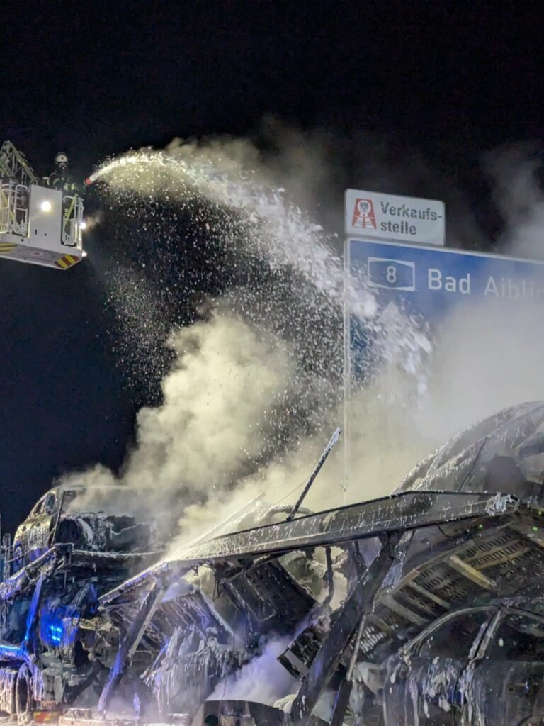 Njemački mediji navode da su svi automobili na transporteru u potpunosti uništeni, dok se tačan uzrok požara i visina materijalne štete još utvrđuju. Nakon završetka gašenja i složenih radova na uklanjanju, autoput je ponovo otvoren oko 12:10 sati.