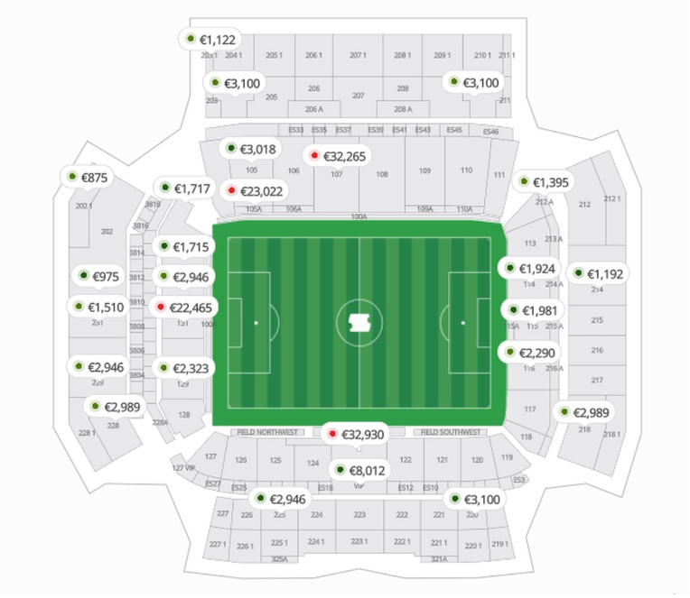 Za utakmicu protiv Švicarska u Los Angelesu, na stadionu SoFi Stadium, cijene su nešto niže – najskuplje prelaze 9.000 eura, dok najjeftinije karte iznose oko 320 eura.
