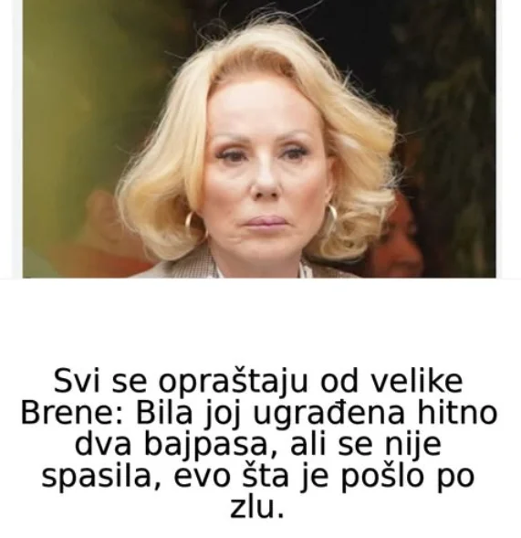 Svi se opraštaju od velike Brene: Bila joj ugrađena hitno dva bajpasa, ali se nije spasiIa, evo šta je pošlo po zlu..