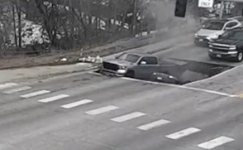 Snimak koji je objavila Policijska uprava Omahe prikazuje trenutak kada se kolovoz iznenada urušava, nakon čega vozila propadaju u nastalu rupu.